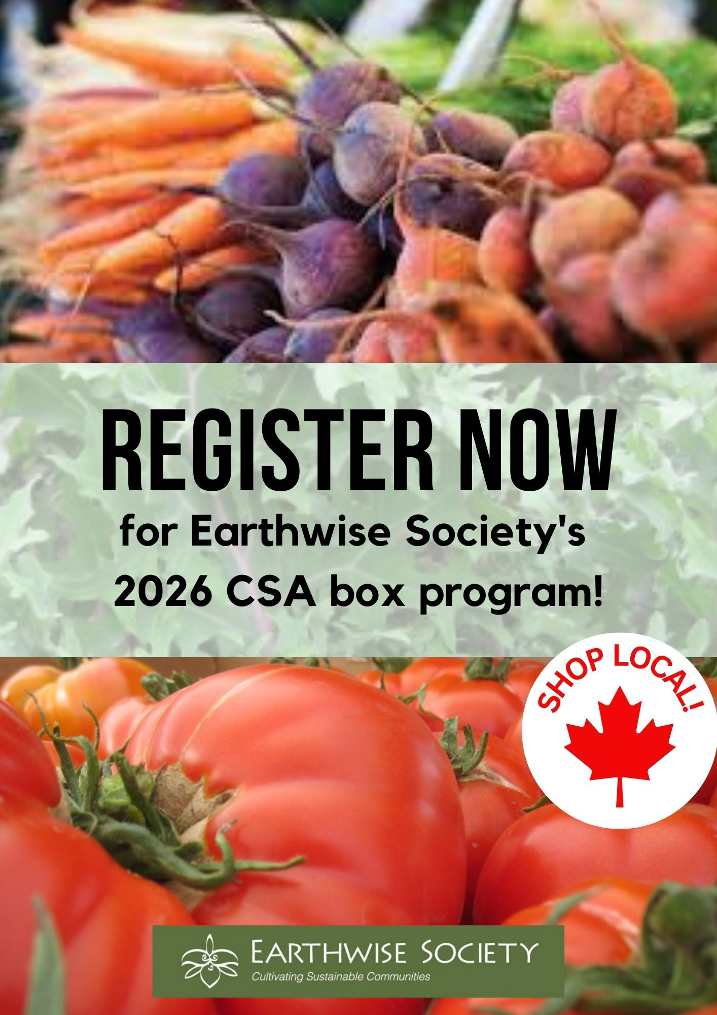 Register now for Earthwise Society's 2026 Community Supported Agriculture subscription box! Get 20 weeks of farm fresh, organically grown Earthwise Produce.